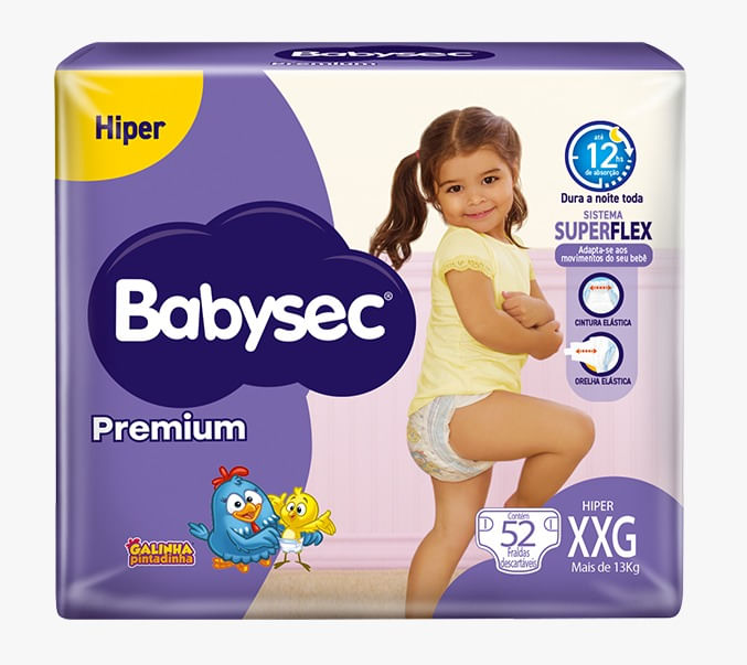 Fralda Babysec Premium Hiper XXG com 52 unidades