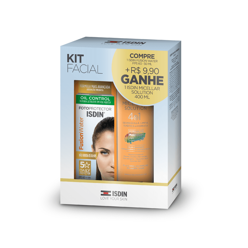 Kit Protetor Solar Facial Isdin Fusion Water FPS60 50ml + Solução Micelar Isdin 400ml