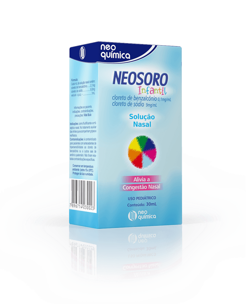 Neosoro Infantil é indicado para descongestionar o nariz e diluir a secreção nasal (fluidificante e