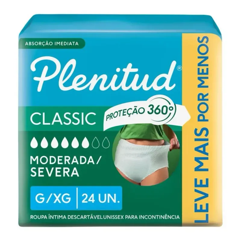 Roupa Íntima Descartável Unissex Plenitud Classic G/XG Com 24 Unidades
